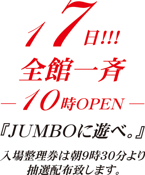 17日!!全館一斉10時OPEN!!「JUMBOに遊べ。」