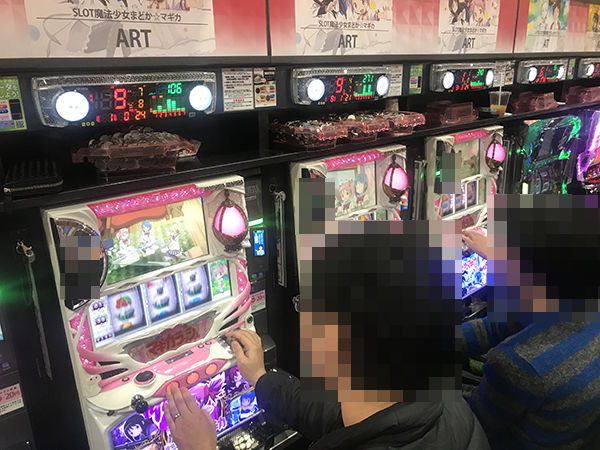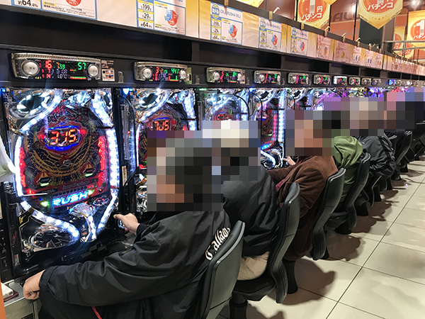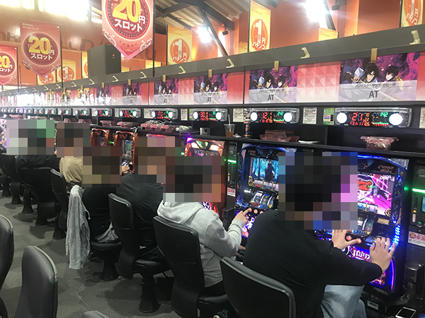 午後のパチスロをみてみると、多くの機種でプレイヤーたちがパフォーマンスを披露していた。