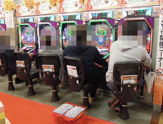7名が1箱以上の持ち玉を使用。なかには、2箱を使って遊技をおこなっている姿もあった。