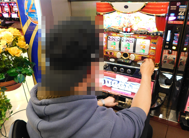 『マイジャグラーⅣ』は4台ずつがむかいあって設置されており、滞在時は8台中4台が稼働。