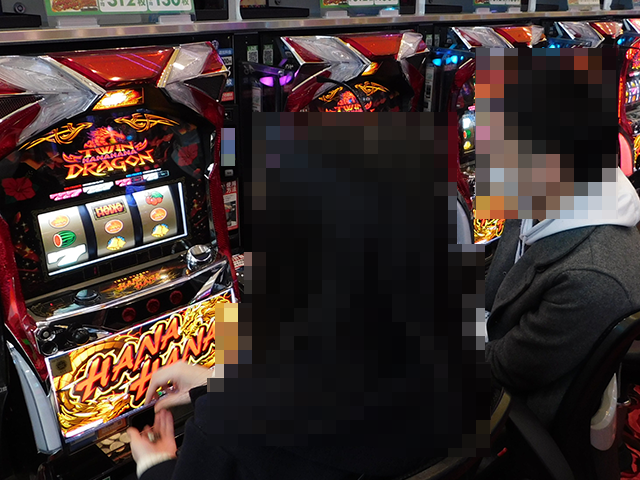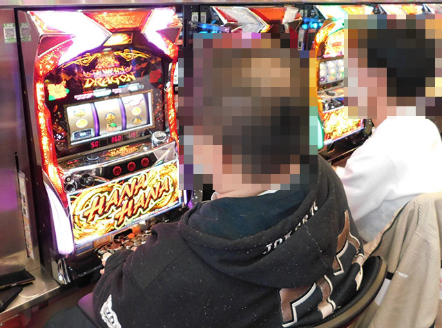 10台中5台が稼働していた『ツインドラゴンハナハナ-30』にも、活躍をしているプレイヤーの姿があった。