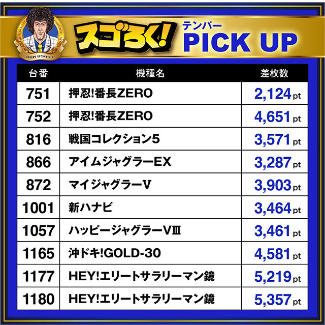 最終的にはどの台もプラスで、それぞれの機種に4,500pt以上をマークした台があったぞ!