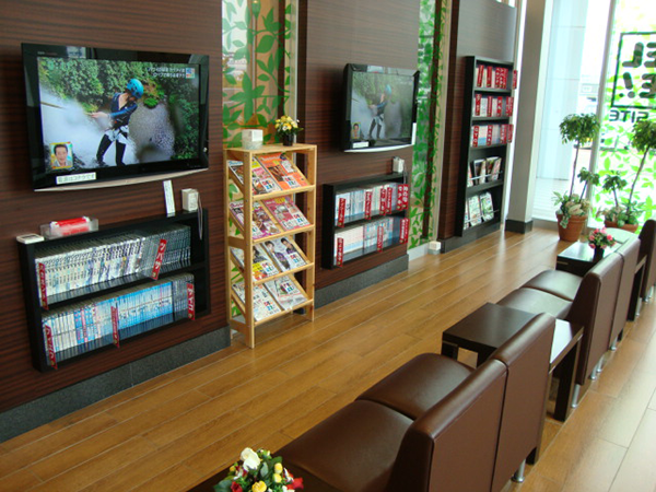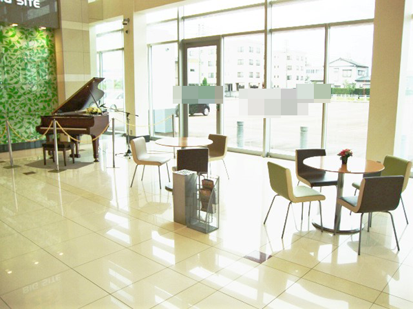 清掃が行き届いてるホール内にはピアノが設置されているレストコーナーがあり、華やかな雰囲気となっている。