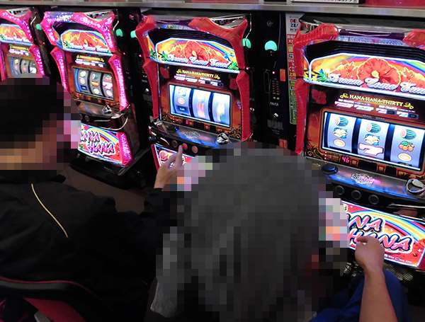 設置されている「ドリームハナハナ‐30」、「ハナハナ鳳凰-30」、「ニューキングハナハナ-30」の3機種それぞれにうれしそうな笑顔がみられた。