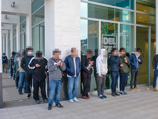 開店前からたくさんのプレイヤーが集結。各人、入店の時刻が来るのを心待ちにしているようだった。