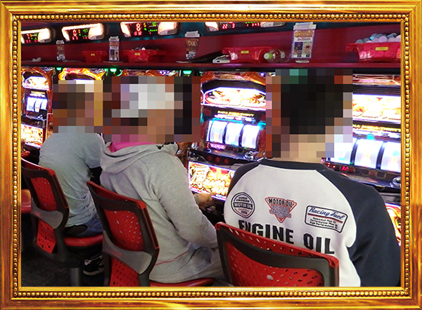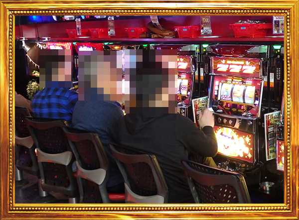 午後のパチスロコーナーには、大勢のプレイヤーが集まっていた。