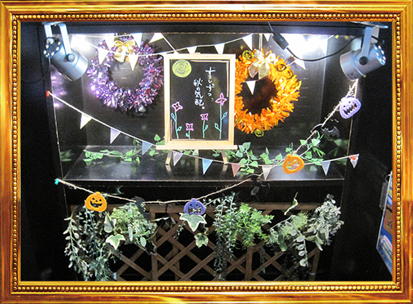 店内に設置された手描きの看板や華やかな装飾も注目をしたポイント。味わいのあるイラストやハロウィンにちなんだリースなど、みているだけでも楽しい気分になれた。