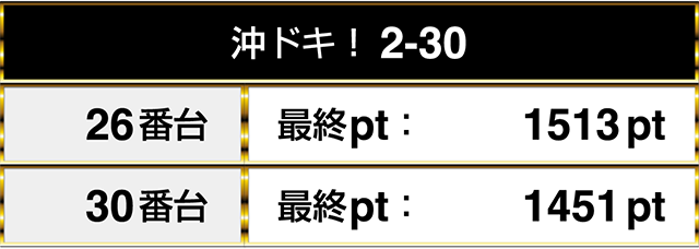 『沖ドキ!2-30』の2台が1000ptオーバー!