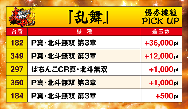 3台が+3,000ptを超えるなど、出玉感もあった。