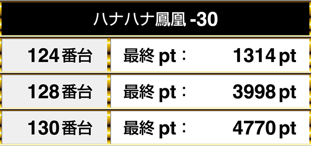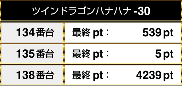 『ツインドラゴンハナハナ-30』の3台がプラスptとなり、1台は4000ptオーバー!!