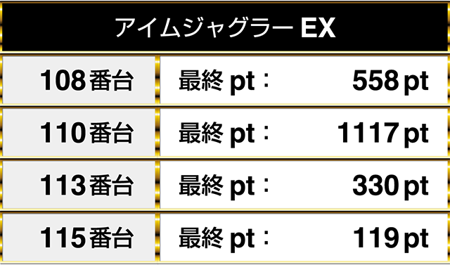1117ptの台があった『アイムジャグラーEX』は4台がプラスpt!