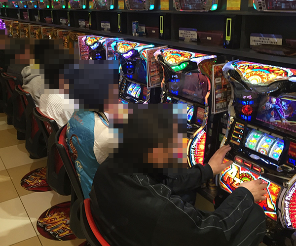 14時を過ぎた頃の20円パチスロで、もっとも盛り上がっていたのはハナハナシリーズ。稼働率が高いだけでなく、機種の性能を最大限に引き出している姿が多かったことが印象的であった。