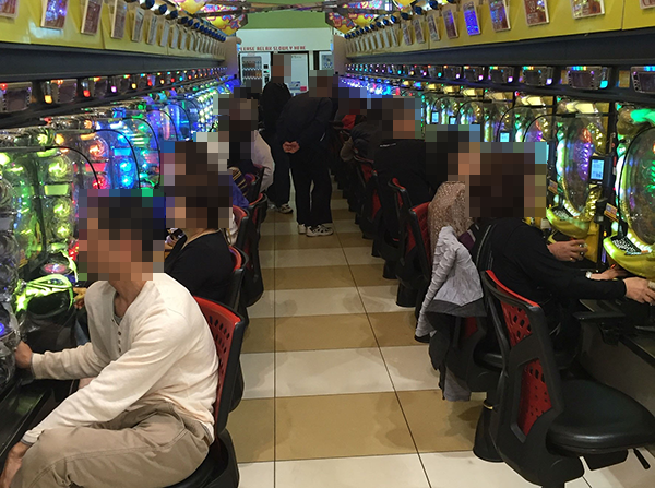 4円パチンコでは、海物語シリーズが大人気。大勢のプレイヤーが機種の魅力を堪能しており、明るい雰囲気がシマ内から感じられた。