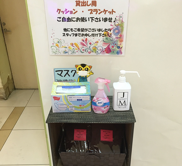 また、クッションやブランケット、マスクなどが用意されており、自由に使うことができる。サービス面の充実ぶりも支持されている要因のひとつなのだろう。
