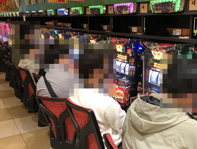 16時頃の「キングハナハナ-30」は6台すべてが埋まり、にぎわいに包まれていた。