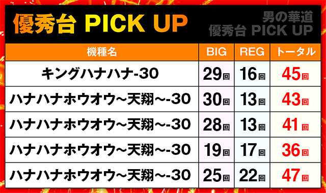 ボーナス回数が43回の台は、BIGだけでも30回を記録した。