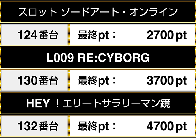 124番台の『スロット ソードアート・オンライン』と130番台の『L009 RE:CYBORG』で遊技を楽しむプレイヤーたちも笑顔であった。