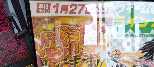 約1ヵ月の間を空けて「感謝してます!!」取材3回目の実施となったのが今回の「VEAM吉田店」。ホールがお客さんに「感謝」の意を伝える模様を取材するのがこの企画の理念だ。