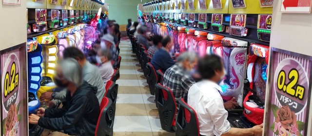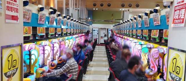 ここまでは21.739スロ&4パチについて触れてきたが、直前に挙げた写真の様に、1&0.2パチといった低貸しコーナーも着席率が高く、盛り上がりを感じられた。