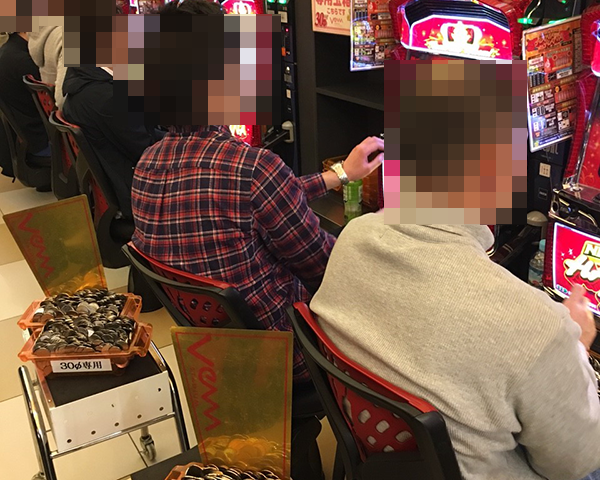 15時頃になっても、20円パチスロのハナハナシリーズは多数のプレイヤーでにぎわっていた。満足そうな表情もあちこちにあり、朝から訪れていたプレイヤーも期待通りの遊技ができていたのではないだろうか。