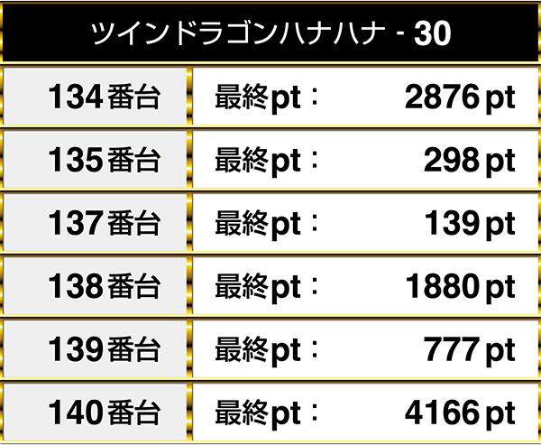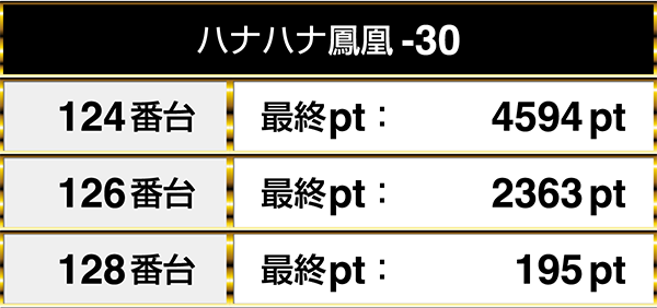 『ハナハナ鳳凰-30』には4594ptを記録する台があった。