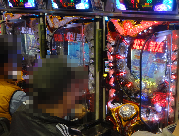 パチンココーナーで、ひときわ明るい雰囲気が感じられたのは「ぱちんこCR真・北斗無双」。パフォーマンスを披露しているプレイヤーがおり、とても目立っていた。