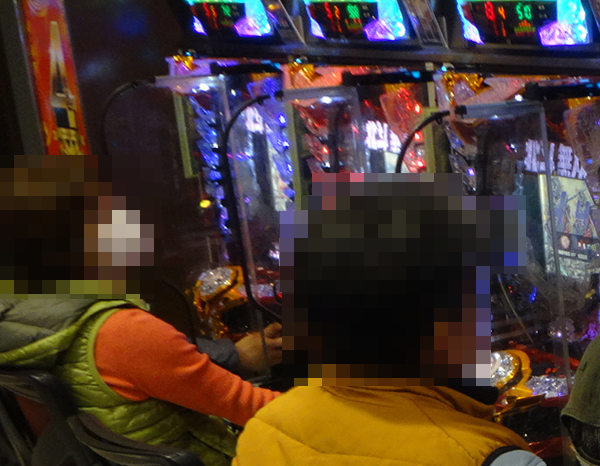 空き台を確保して遊技をはじめる姿も確認。店内をまわっているあいだにほとんどの席が埋まり、よりいっそうにぎわいが大きくなった。