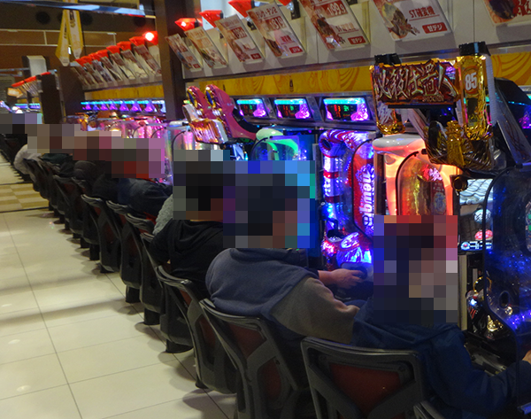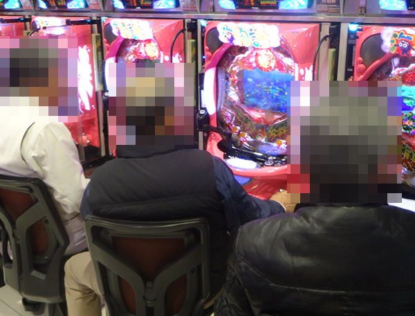 「CR真・花の慶次2〜漆黒の衝撃 2400」や海物語シリーズなど、好評の機種がいくつもあるなかでも、ひときわにぎやかな雰囲気が感じられた。