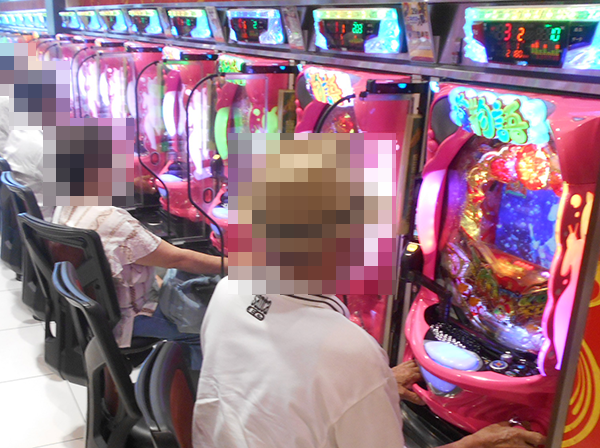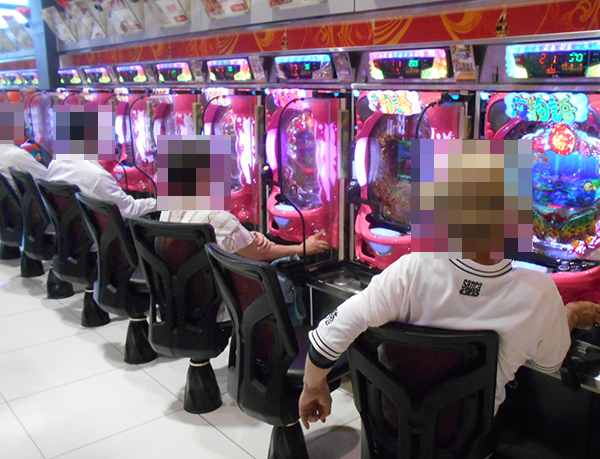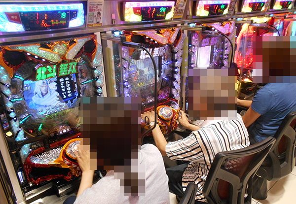 いくつもの場所に目をひかれたが、もっとも魅力的に映ったのはやはり「ぱちんこCR真・北斗無双」と「CRスーパー海物語IN沖縄4」で遊技をおこなっているプレイヤーであった。
