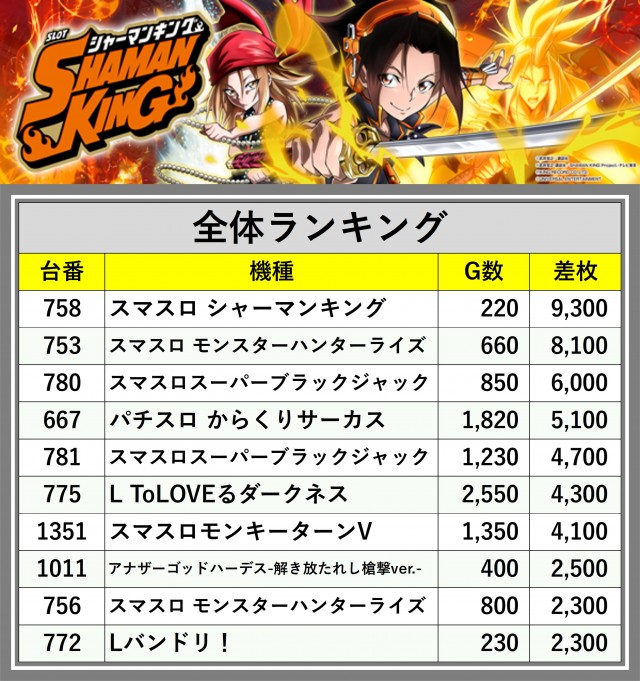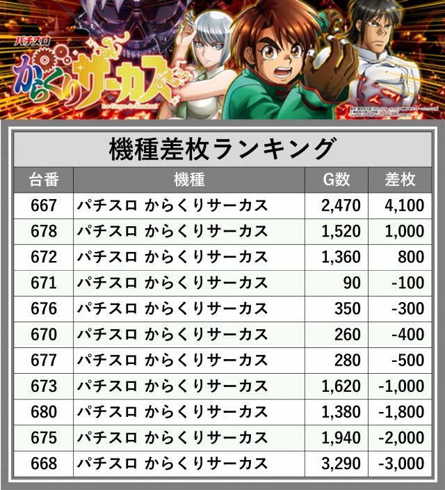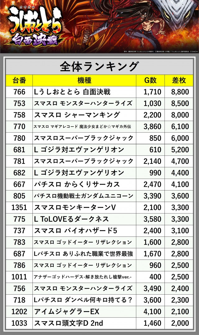 ※差枚数順に掲載しています