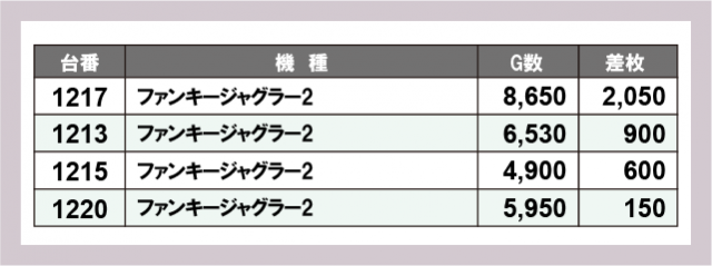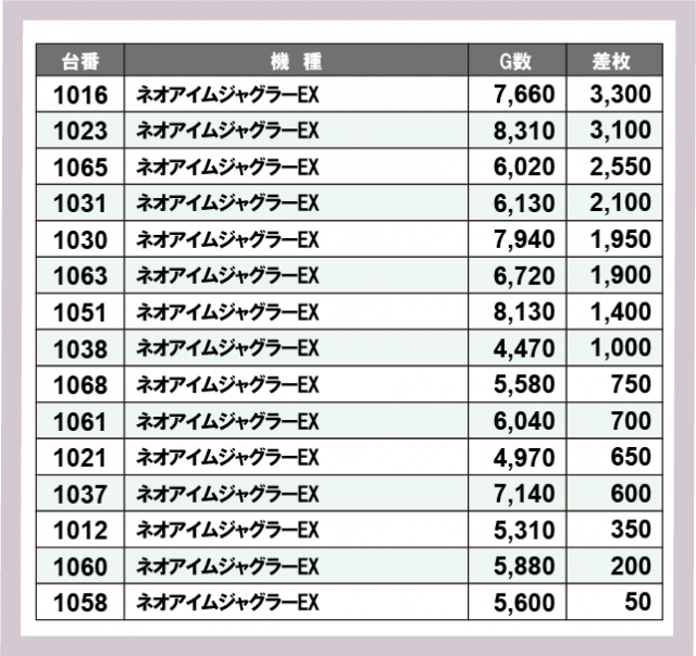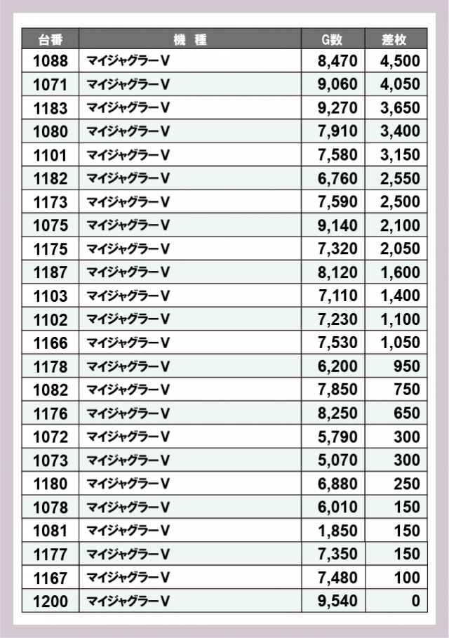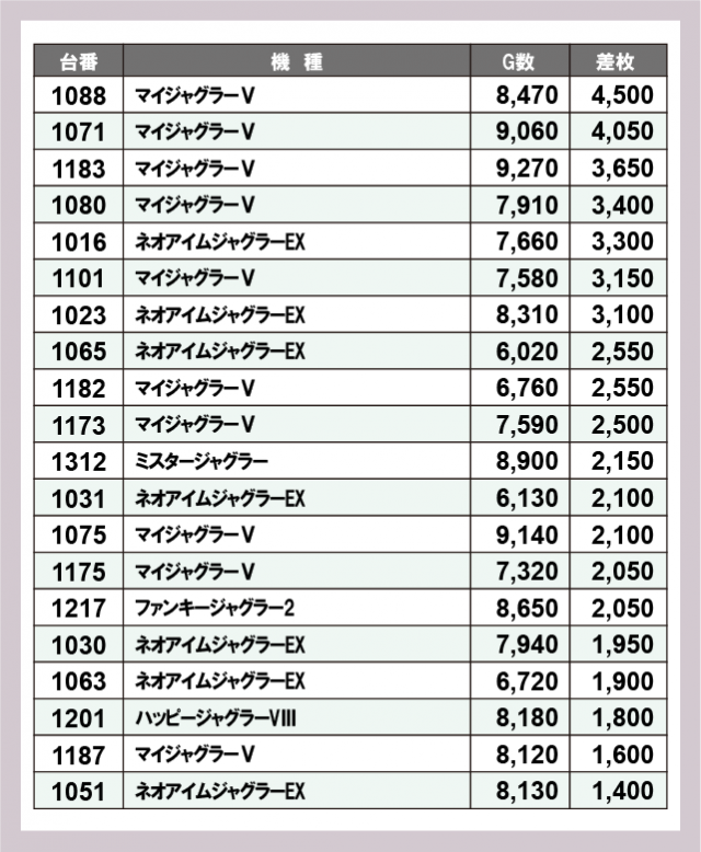 ジャグラー差枚ランキング