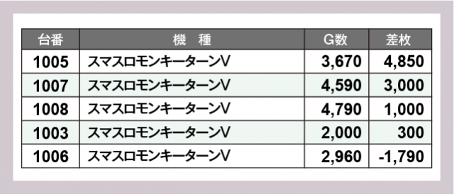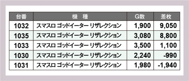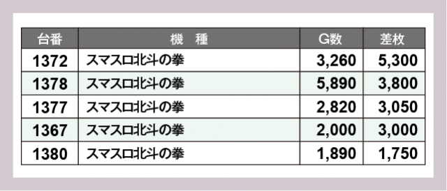 ※差枚数順に掲載しています