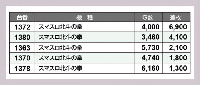 ※差枚数順に掲載しています