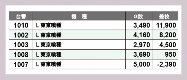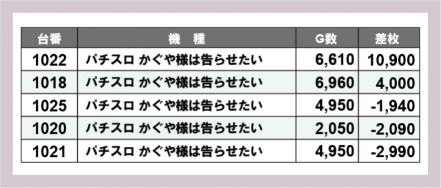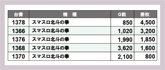 ※差枚数順に掲載しています