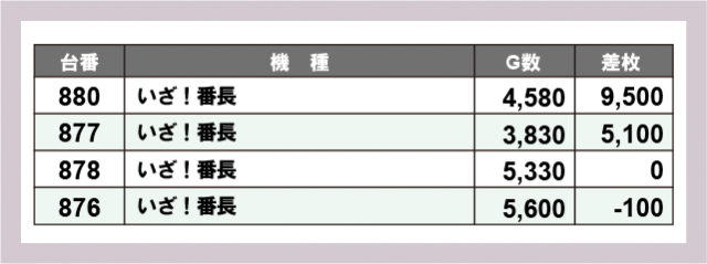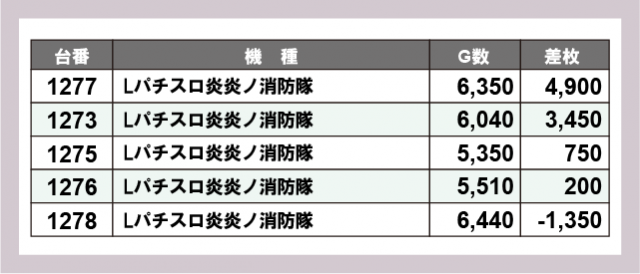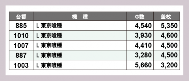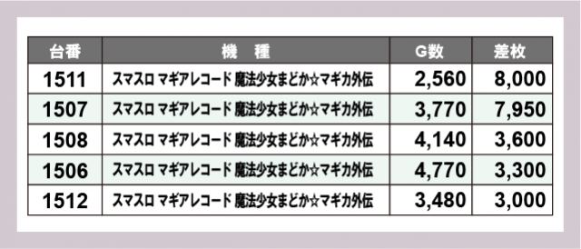 ※差枚数順に掲載しています