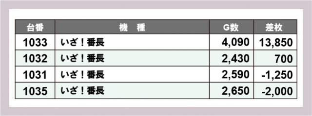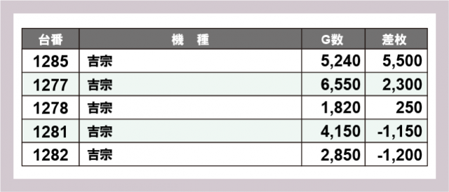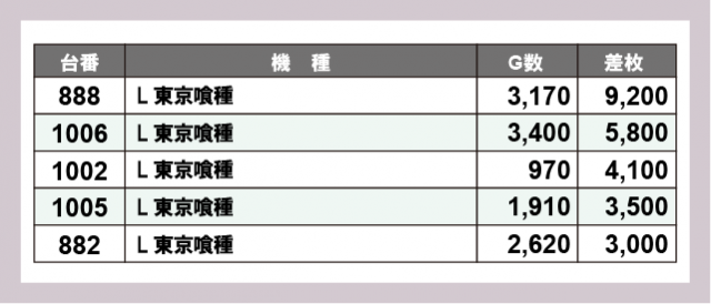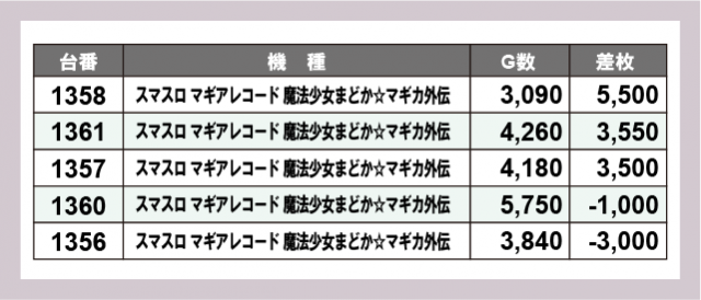 ※差枚数順に掲載しています