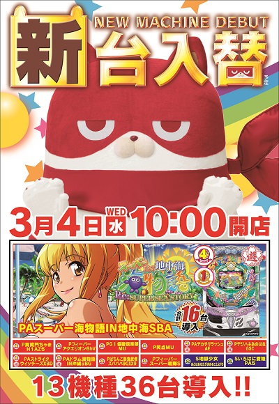 選べるラインナップ→P4円280台・1円120台・S20円194台・5円36台