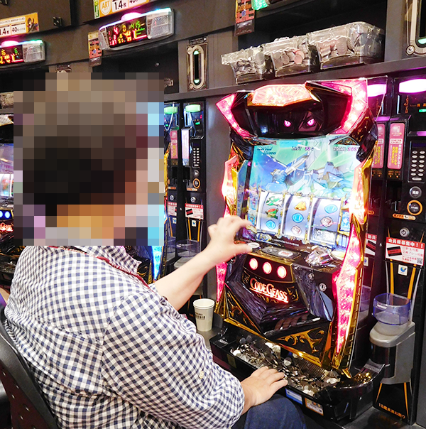 新台の「パチスロコードギアス反逆のルルーシュR2」も盛況。プレイヤーの表情からは、新機種の楽しさを味わっていることが伝わってきた。