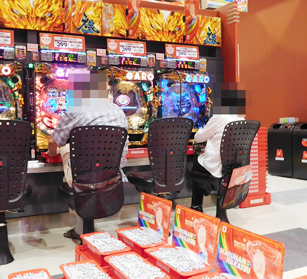 開店直後の様子をみてみると、20円パチスロの「バジリスク~甲賀忍法帖~絆」や「パチスロコードギアス反逆のルルーシュR2」、4円パチンコの「ぱちんこCR真・北斗無双」などが人気。