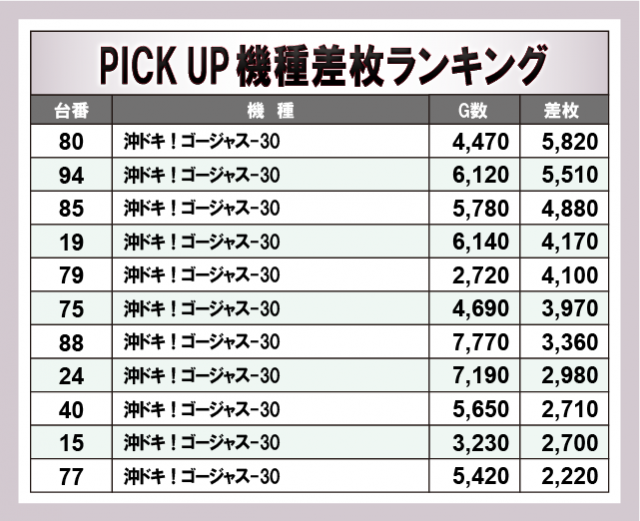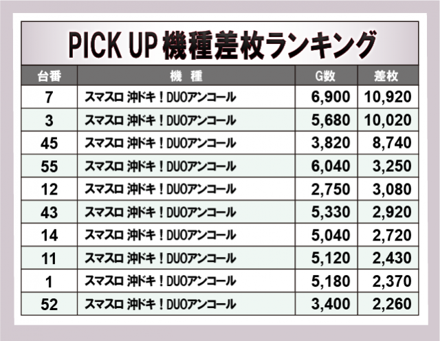 ※差枚数順に掲載しています。