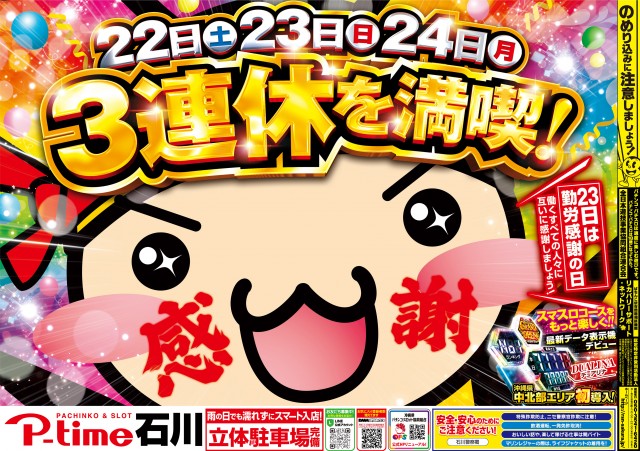 ピータイム石川店で楽しもう😊😊 三連休~~~ッ❗❗❗