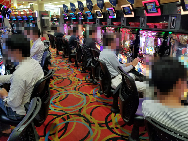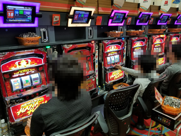 17時頃の店内で、一際大きな盛り上がりを見せていた20円パチスロコーナー。