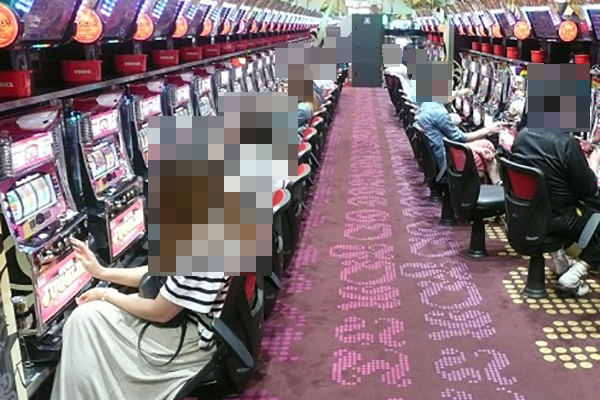 海物語シリーズで遊技を楽しんでいるプレイヤーも多く、笑みを浮かべている姿も印象的。