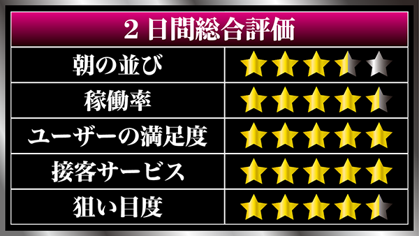 また、ジャグラーシリーズやハナハナなどに、シンプルな告知を味わっている姿が多数と、随所から満足度の高さが感じられた。