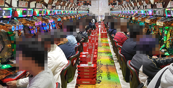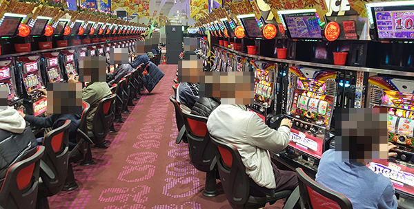 20円パチスロにおいて、とくに活気づいていたのは「バジリスク~甲賀忍法帖~絆」と「パチスロ モンスターハンター~狂竜戦線~」。機種の性能を最大限まで引き出しているような姿が多く、シマ内には明るい雰囲気が広がっていた。