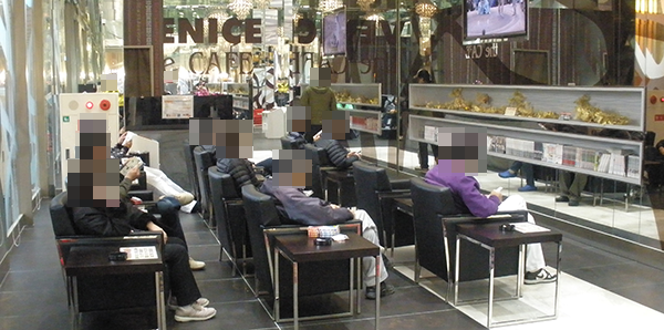 広々としたレストコーナーには、マンガ本やマッサージチェアなどが用意されている。ソファーの数も多く、利用しているプレイヤーは居心地のよさを感じていることが伝わってきた。