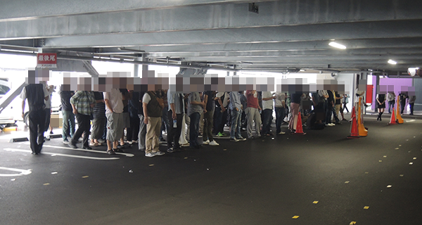 開店前に集まっていたプレイヤーは、なんと1000名以上。大きな期待を受けているホールであることがうかがえた。