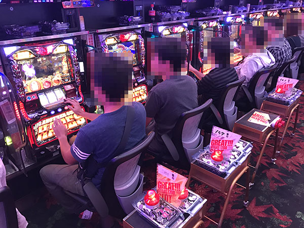 午前はパチンコ、パチスロ共に満台が続出し、定番機種をメインに大きな盛り上がりを感じられた。