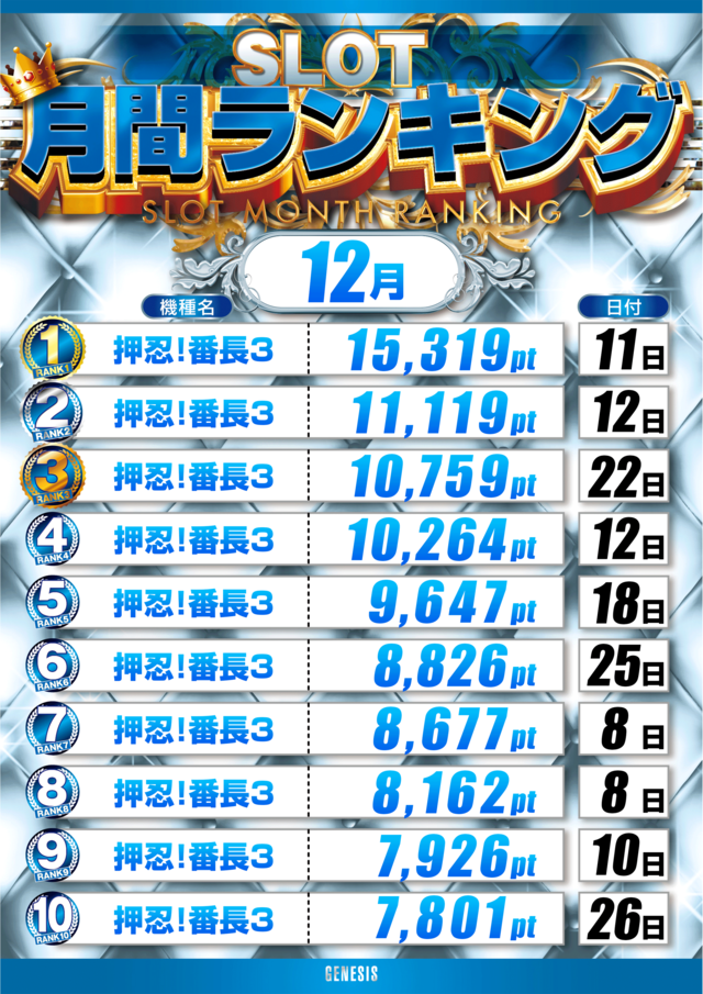 1位 12月9日(火) 2位 12月7日(日) 3位 12月4日(木)