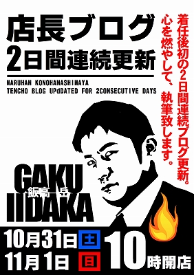 10月27日(火)10時開店!!店長ブログ更新済!!